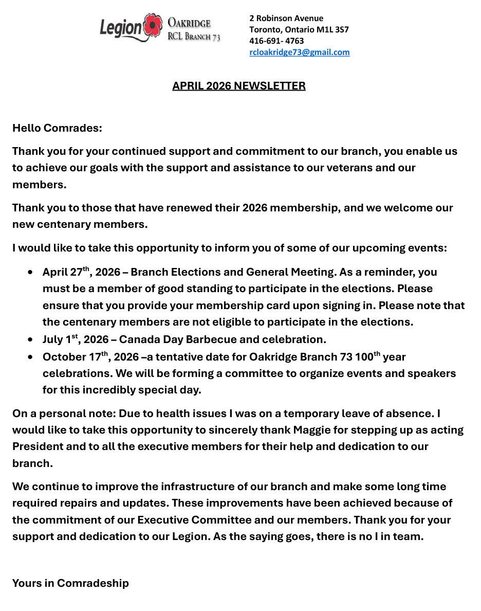 Royal Canadian Legion – 95th Anniversary
